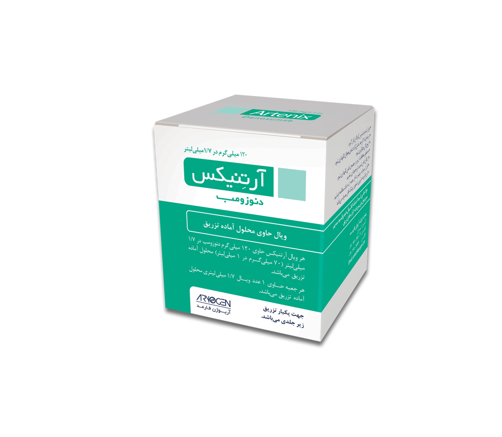 روش استفاده صحیح از آرتنیکس این دارو باید مطابق با دستور پزشک مصرف شود. دوز توصیه شده در بزرگسالان 120 میلی گرم هر چهار هفته به صورت تزریق زیرجلدی است. اگر در حال درمان تومور سلول بزرگ استخوان و یا Hypercalcemia ناشی از بدخیمی هستید، یک دوز اضافی از آرتنیکس، یک هفته و دو هفته پس از دوز اول دریافت خواهید کرد. در طول درمان به بیمار توصیه میشود تحت نظر پزشک مکملهای کلسیم و ویتامین D استفاده نماید. آرتنیکس روی ران، اطراف ناف یا بخش بالایی بازو به شکل زیرجلدی تزریق می گردد. آرتنیکس به صورت ویال آمادهی تزریق حاوی محلول شفاف بدون رنگ و یا زرد کمرنگ است. هر جعبه آرتنیکس حاوی یک عدد ویال حاوی محلول آمادهی تزریق و یک عدد بروشور مخصوص بیمار است.