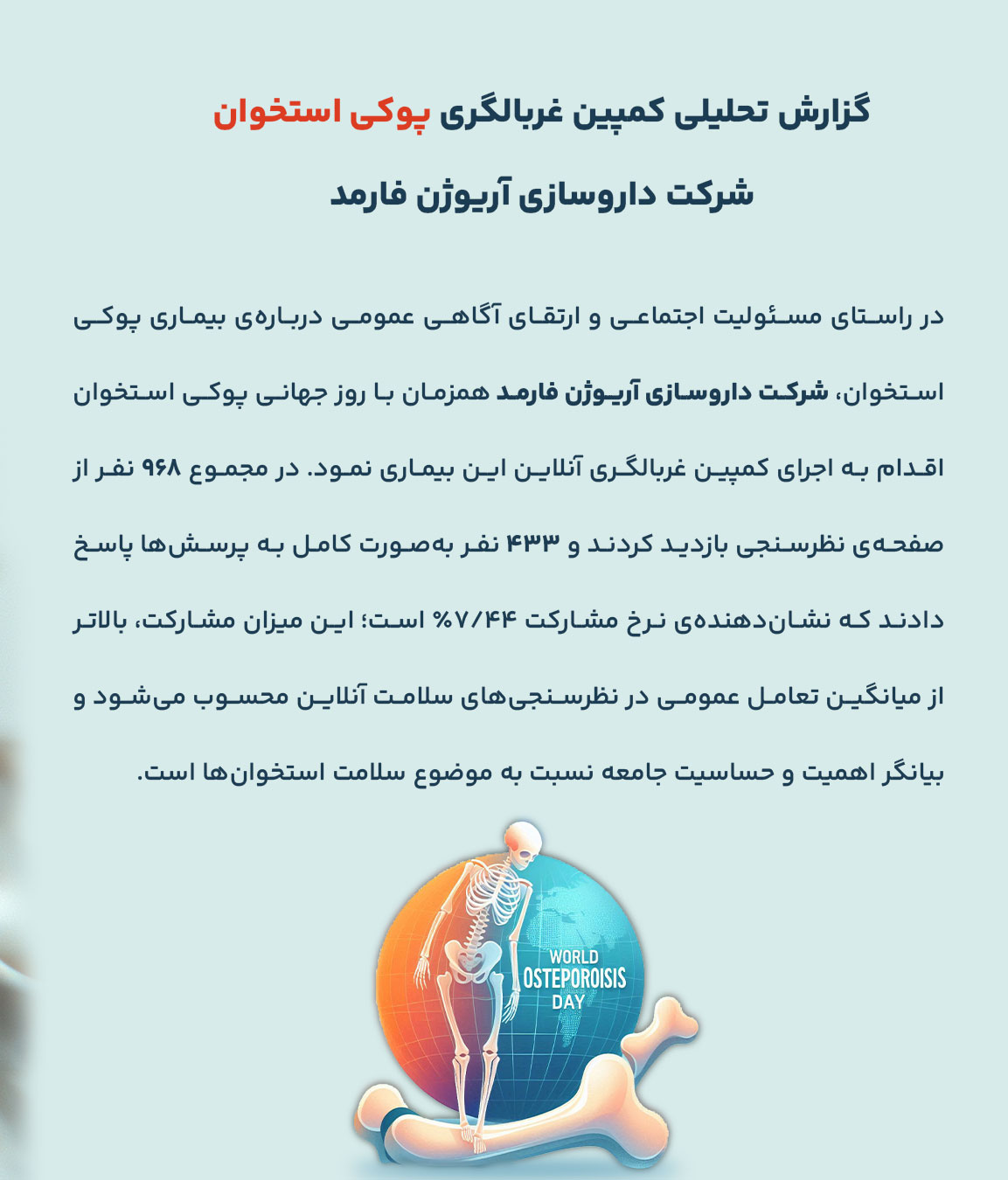 نتایج کمپین غربالگری پوکی استخوان شرکت آریوژن فارمد